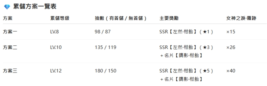 🎁 獎勵:SSR 思緒【左然·柑飴】(★3)+限定名片【鐫影·柑飴】、女神之淚·霜跡 ×26