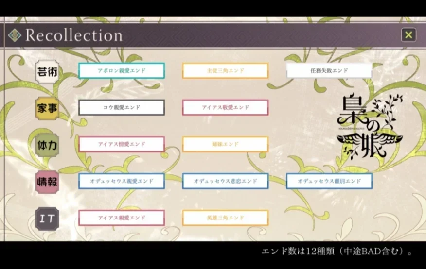 ・路線/結局數量:5條路線/12個結局(每條路線約2~3小時)