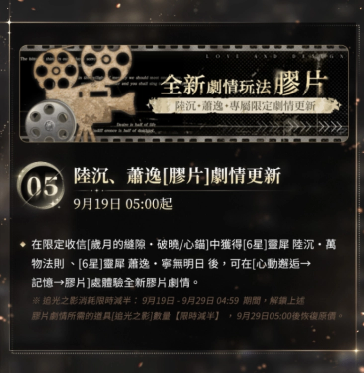 [6★] 陸沉、蕭逸:新增【膠片】劇情