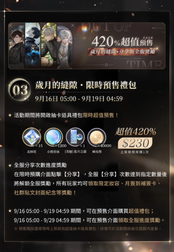 【歲月的縫隙 主線池 × 預售禮包重點整理】