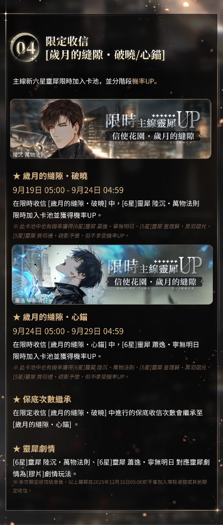 6★:陸沉・萬物法則、蕭逸・寧無明日(分階段UP,另一位僅隨機出現)