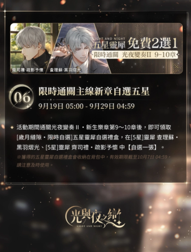《光與夜之戀》【歲月的縫隙】新主線開啟&預售禮包攻略