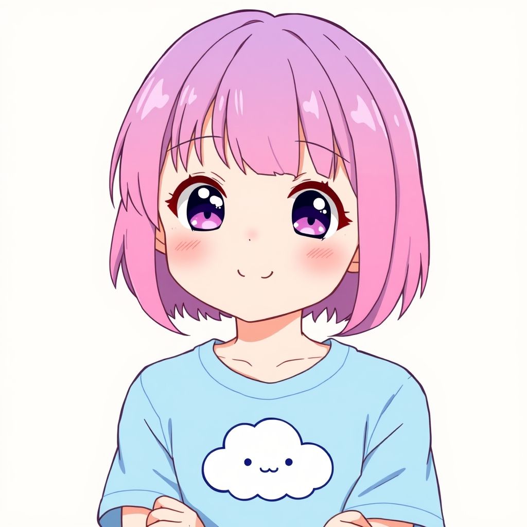 有著淡紫色頭髮和明亮眼睛女孩,