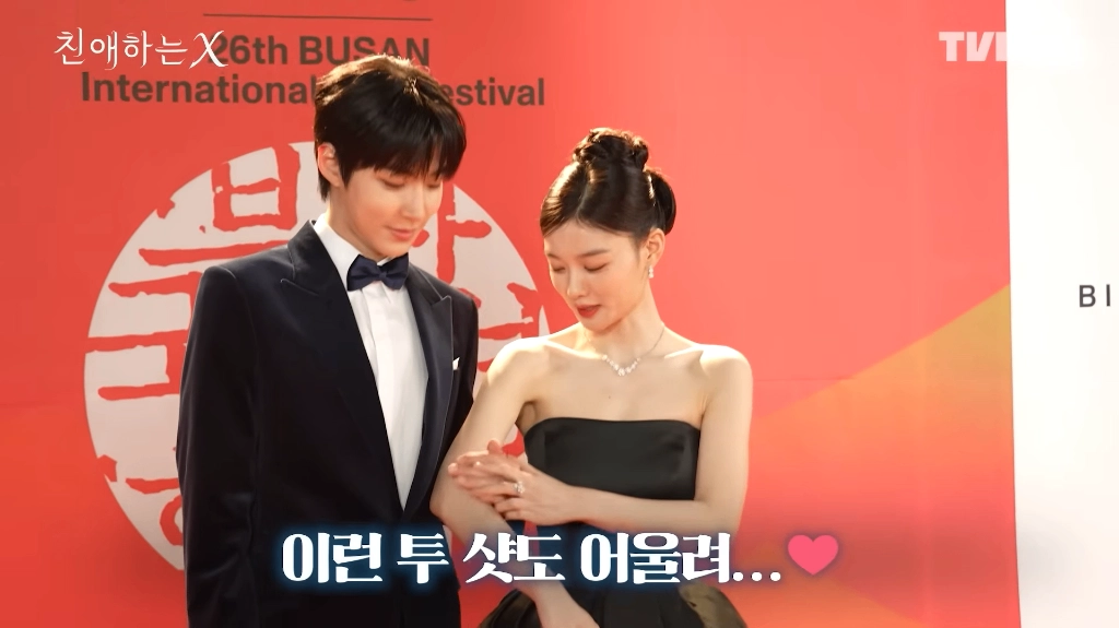 黃寅燁跟金裕貞拍紅毯那場戲的花絮合照,